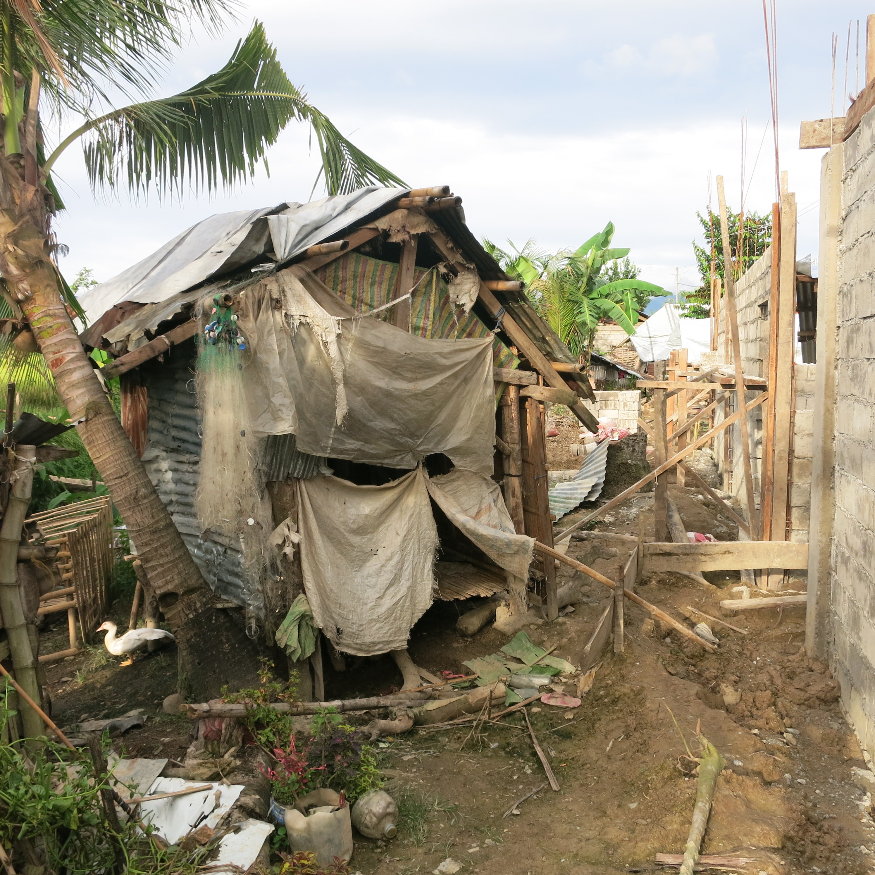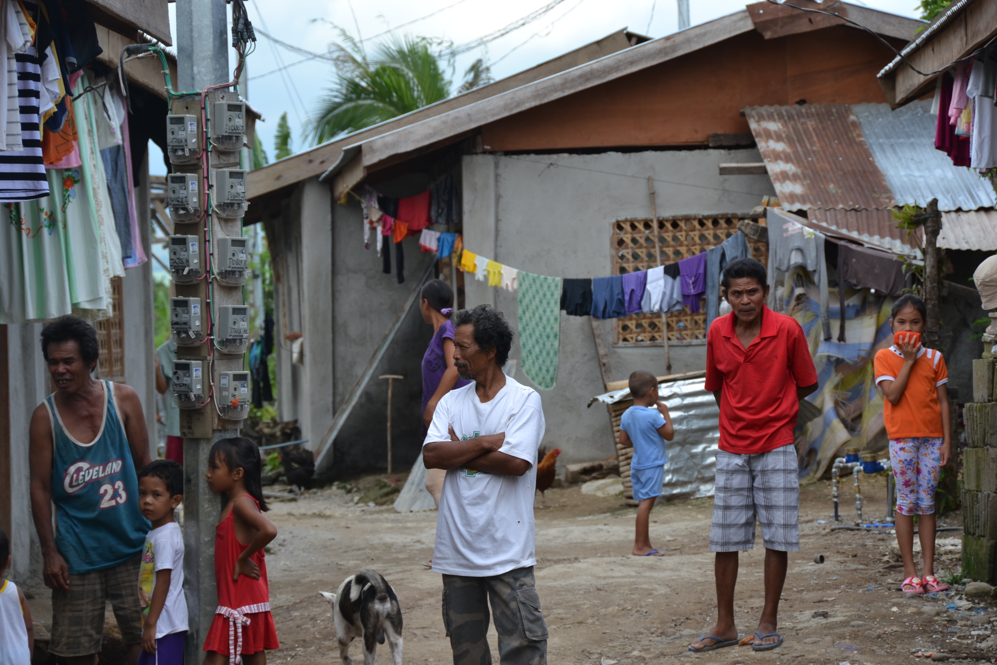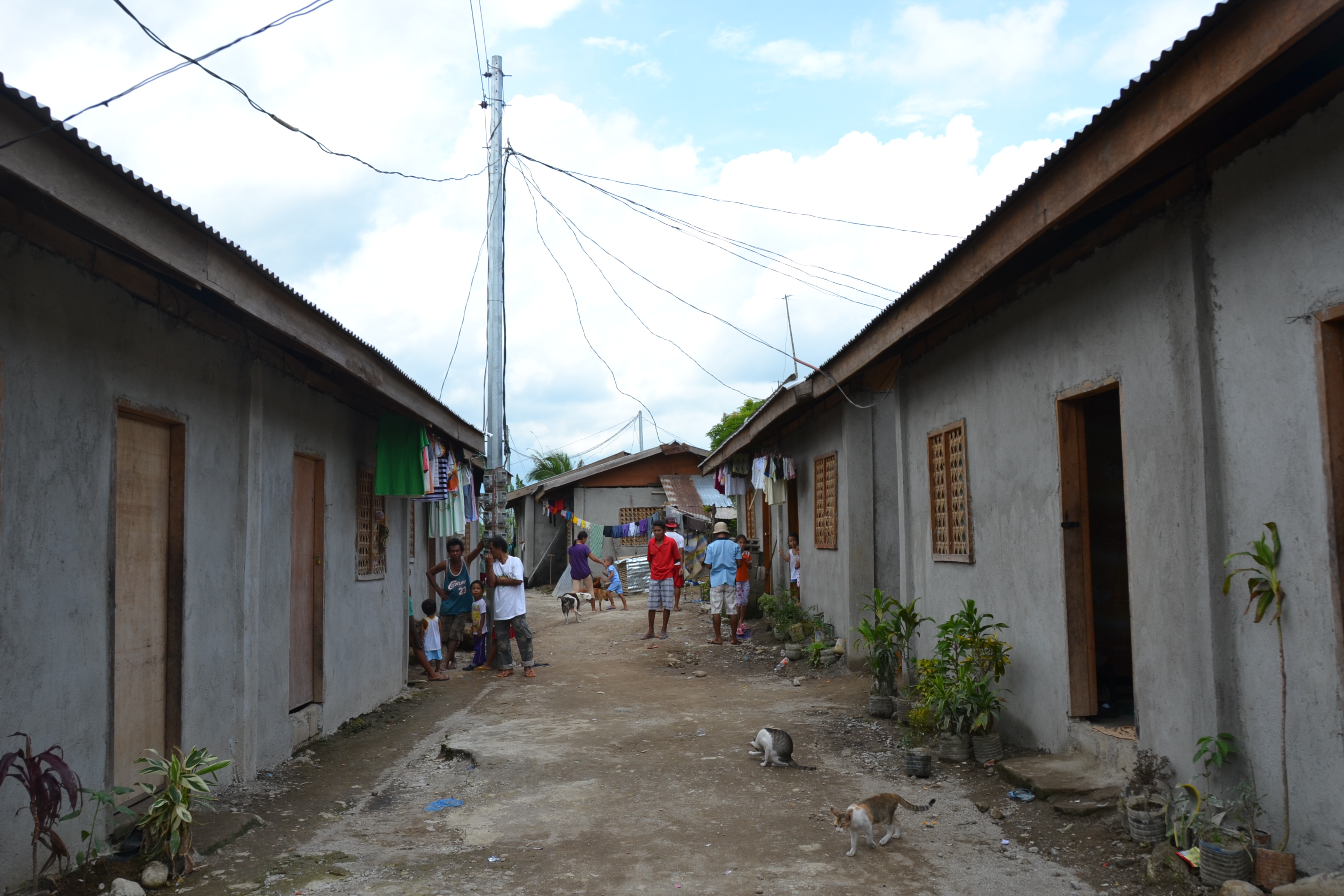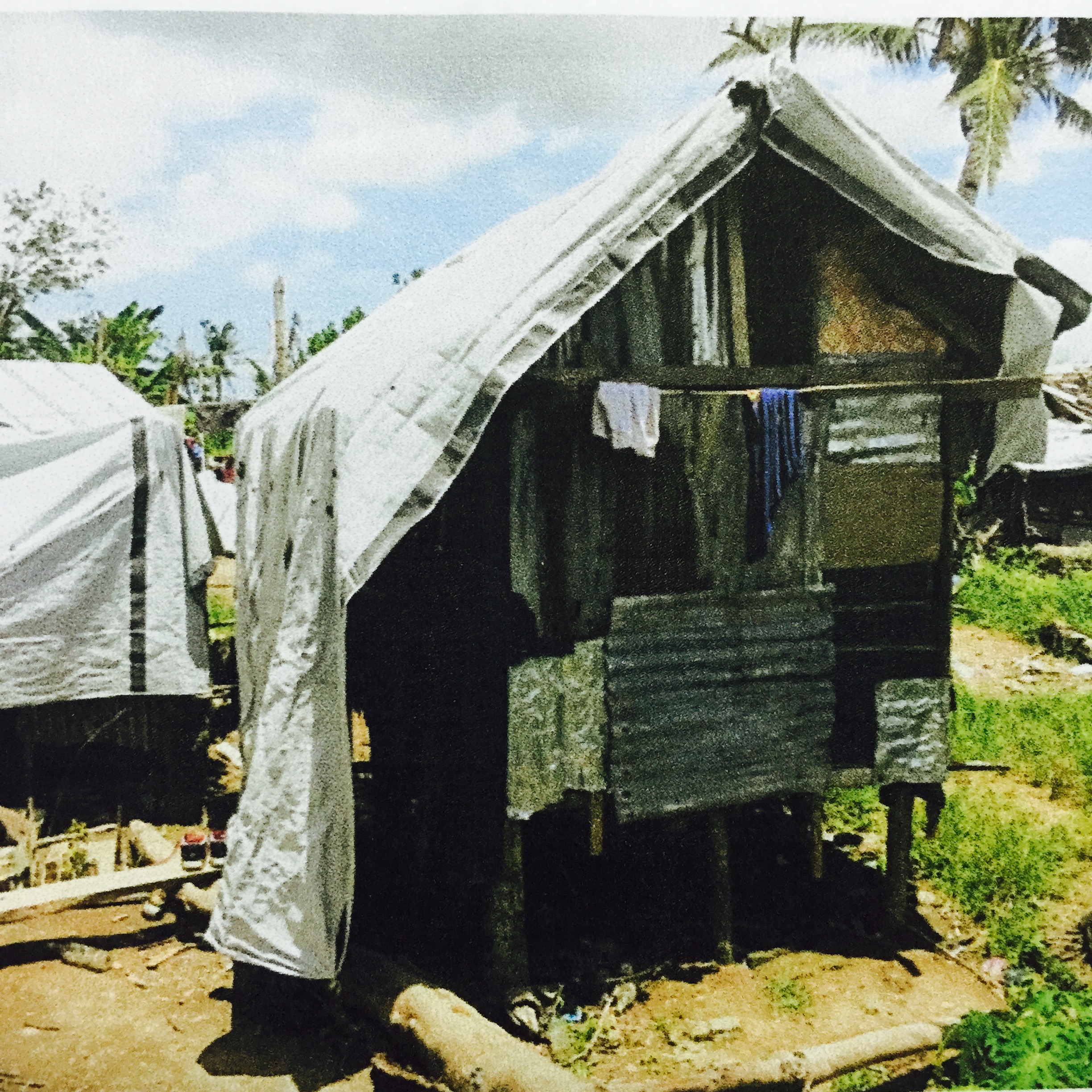 When Typhoon Yolanda hit the region, the community with houses of very light materials situated in the middle of a rice field was badly hit. The families of farmers put up tents and makeshifts houses after the typhoon.