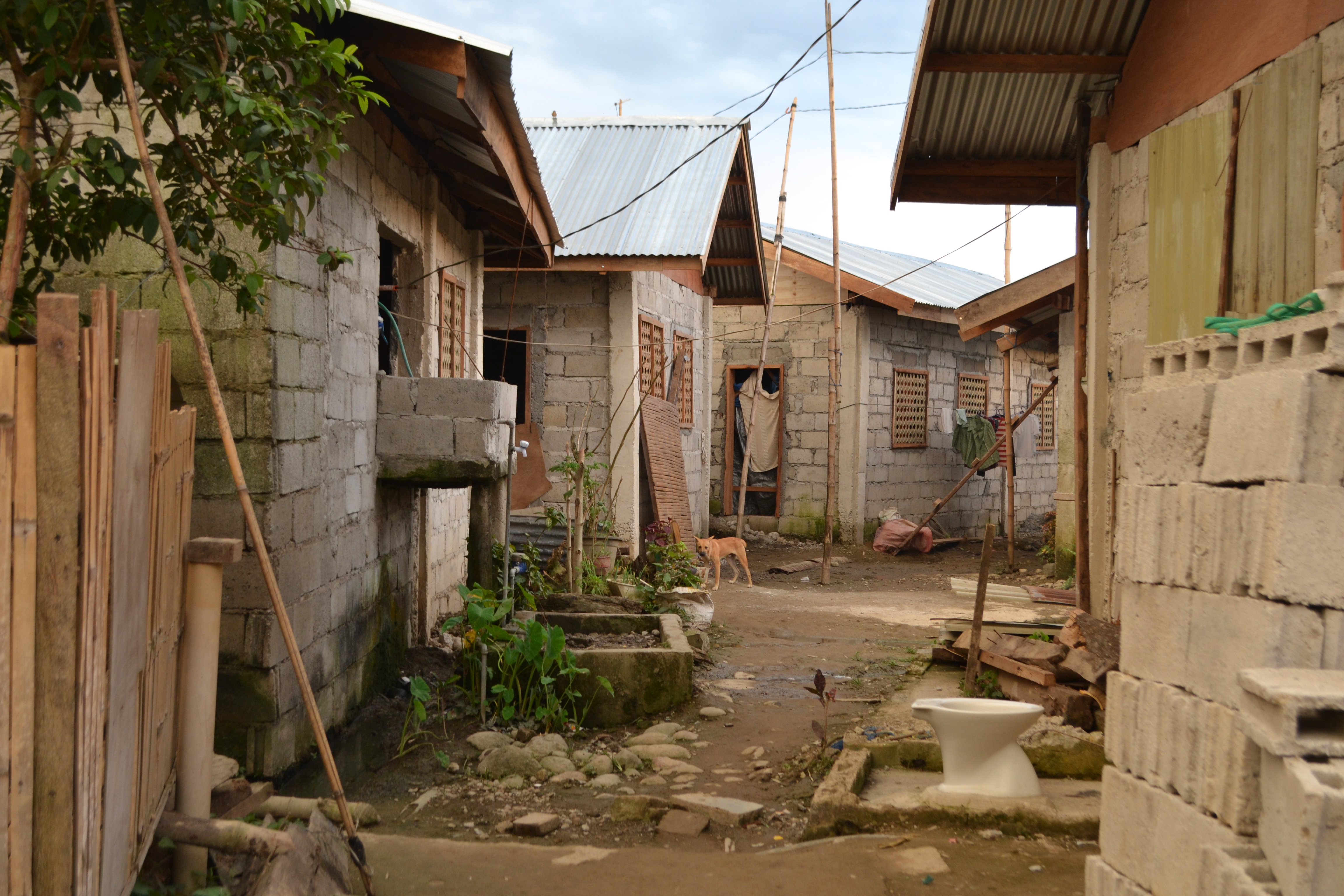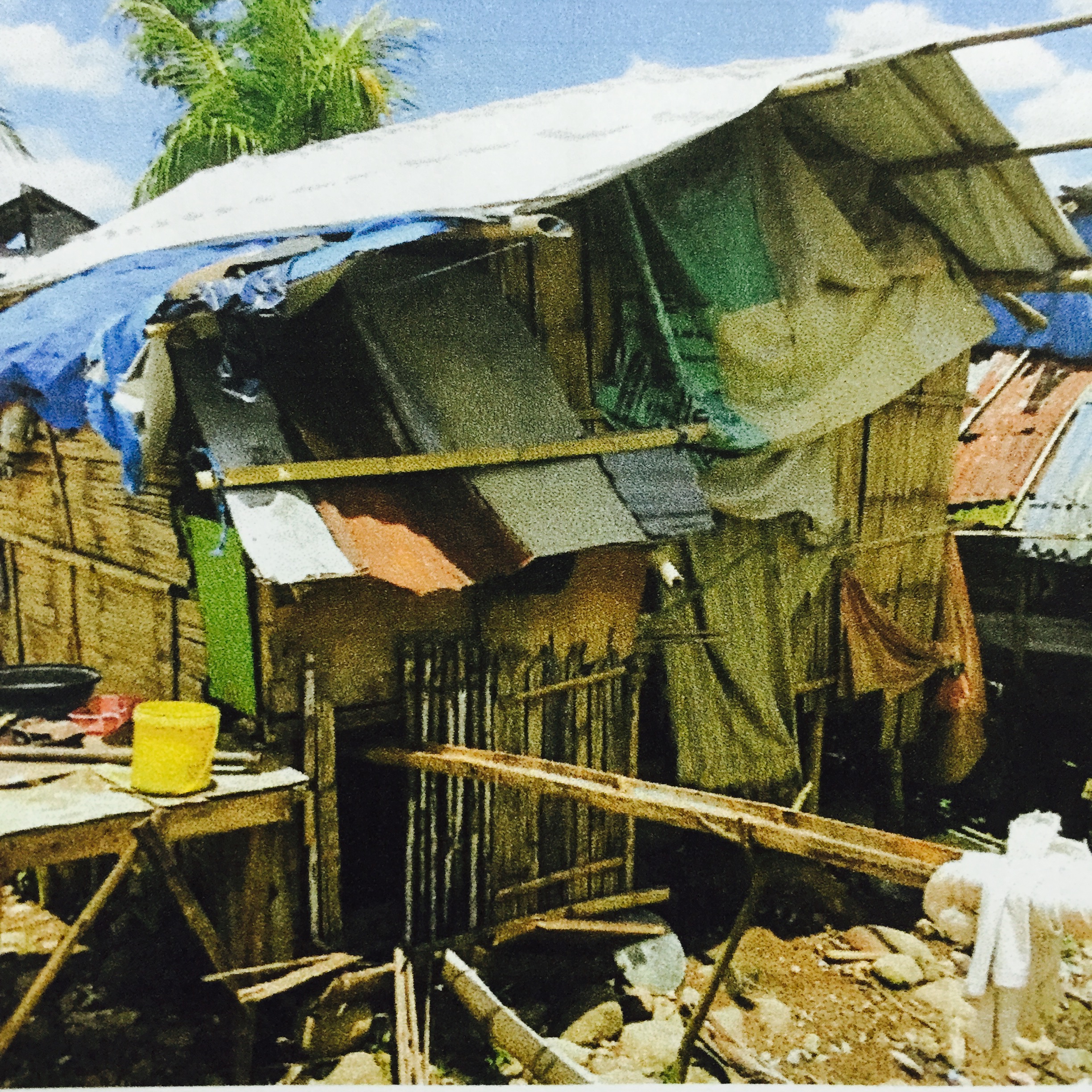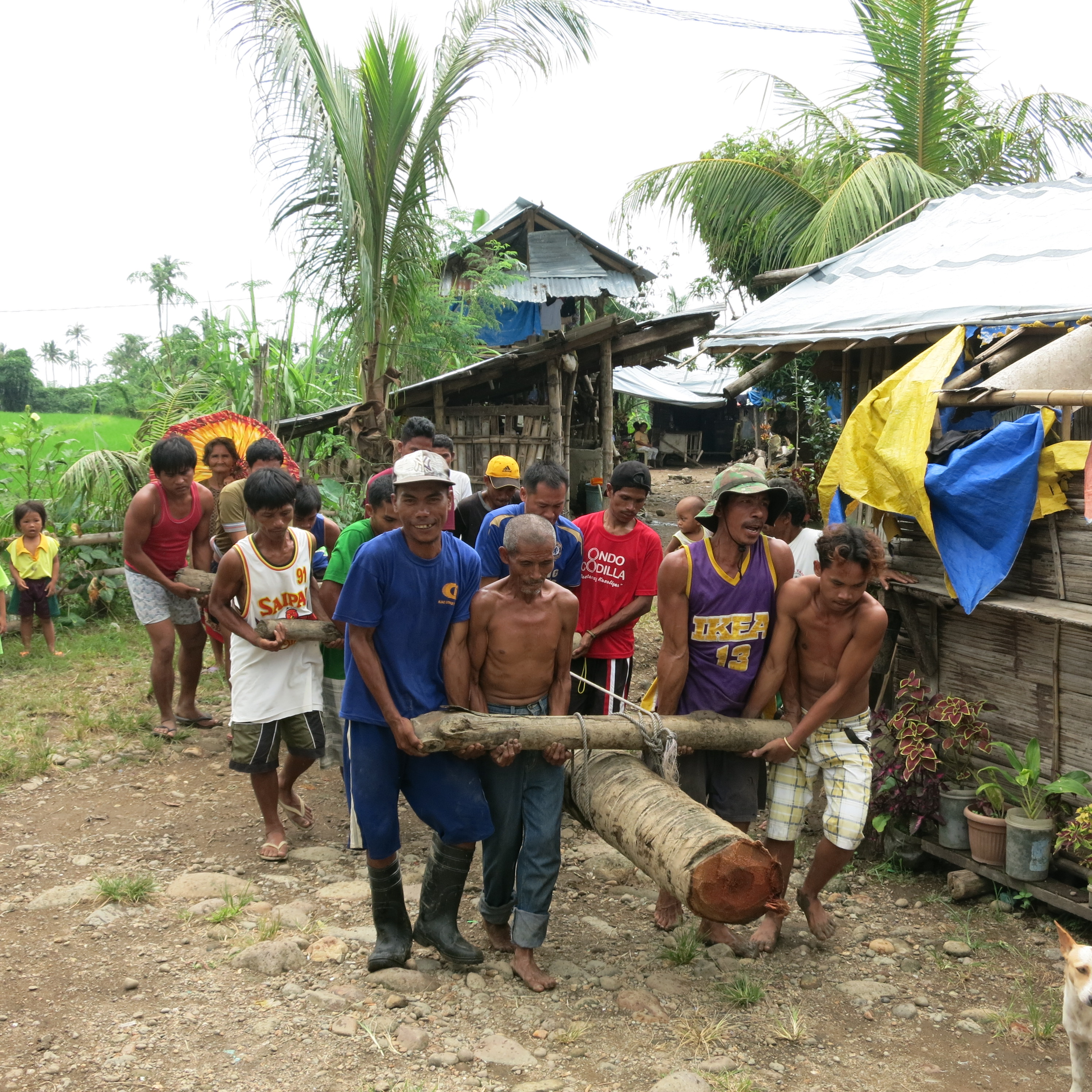 When Typhoon Yolanda hit the region, the community with houses of very light materials situated in the middle of a rice field was badly hit. The families of farmers put up tents and makeshifts houses after the typhoon.