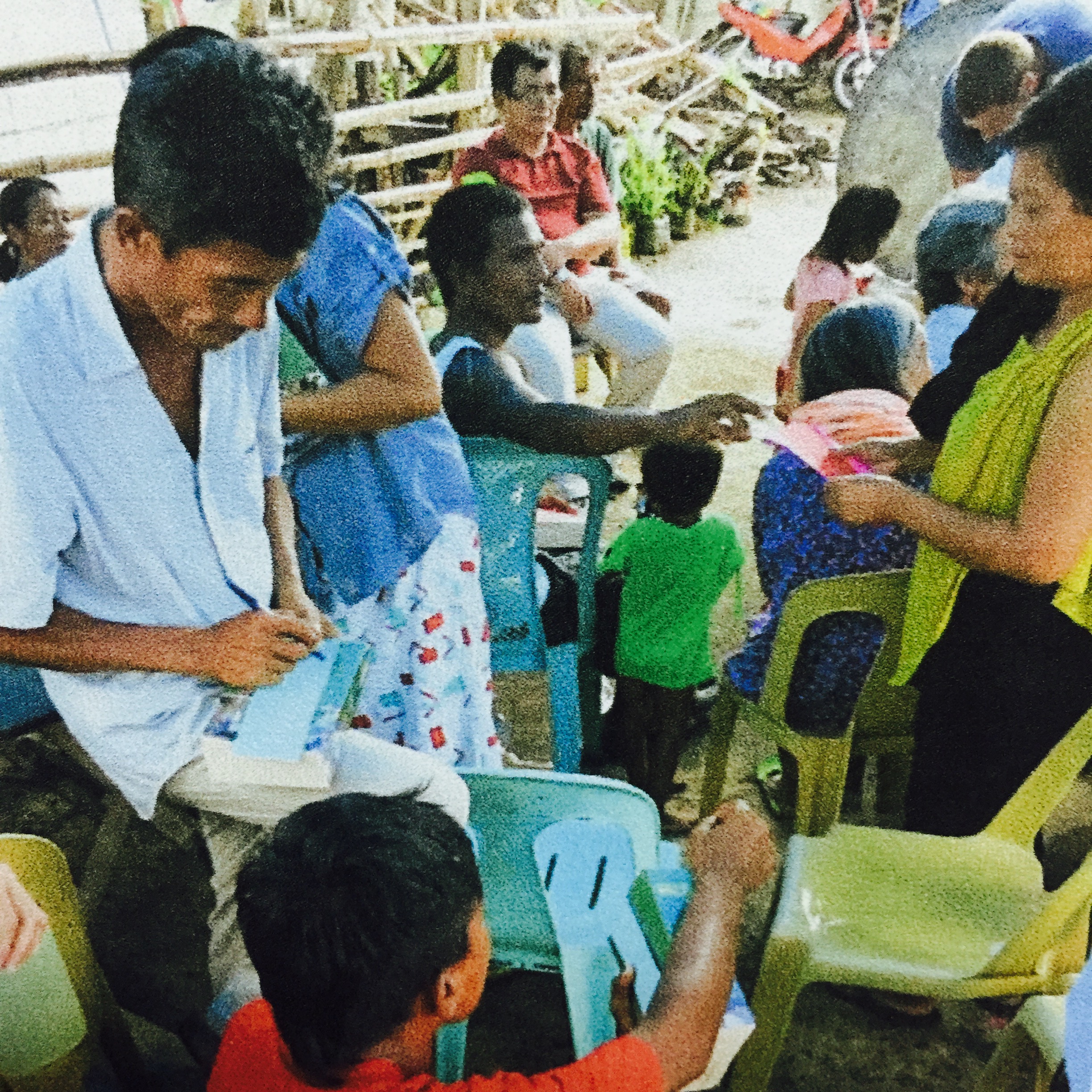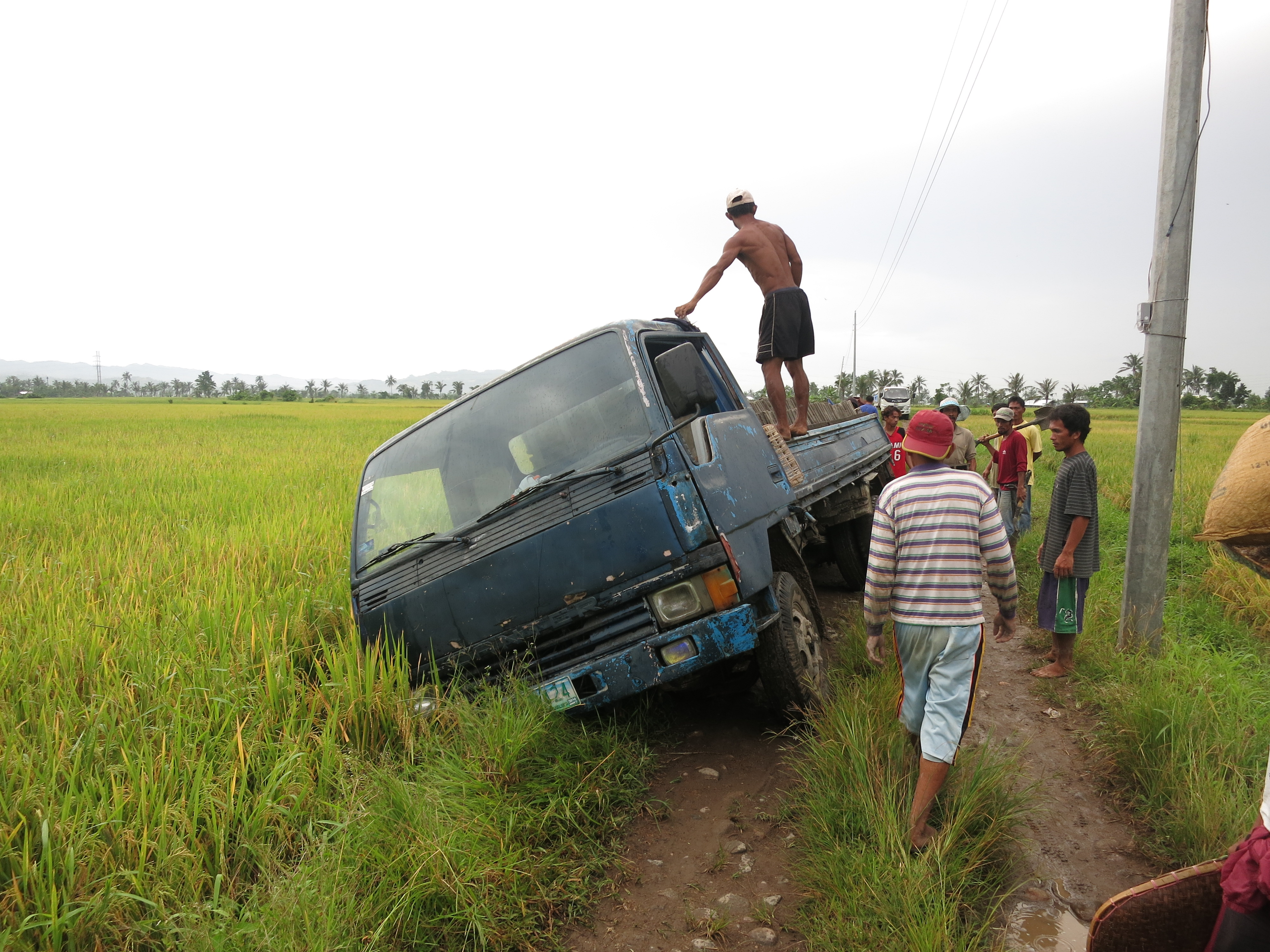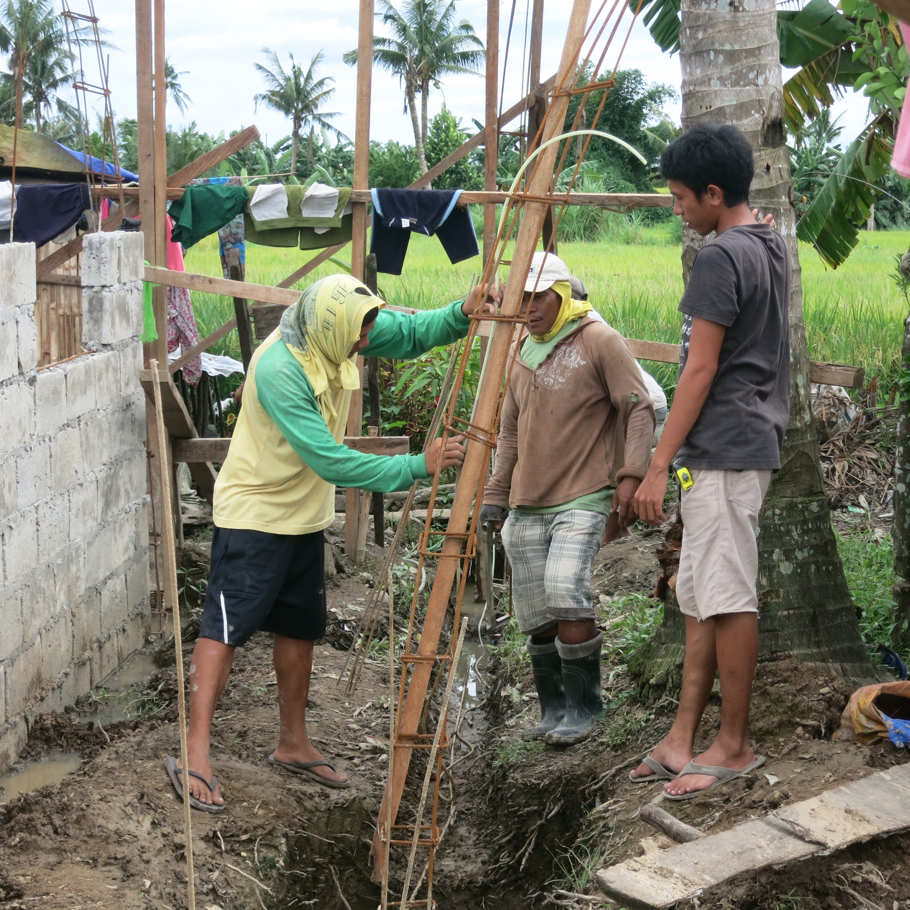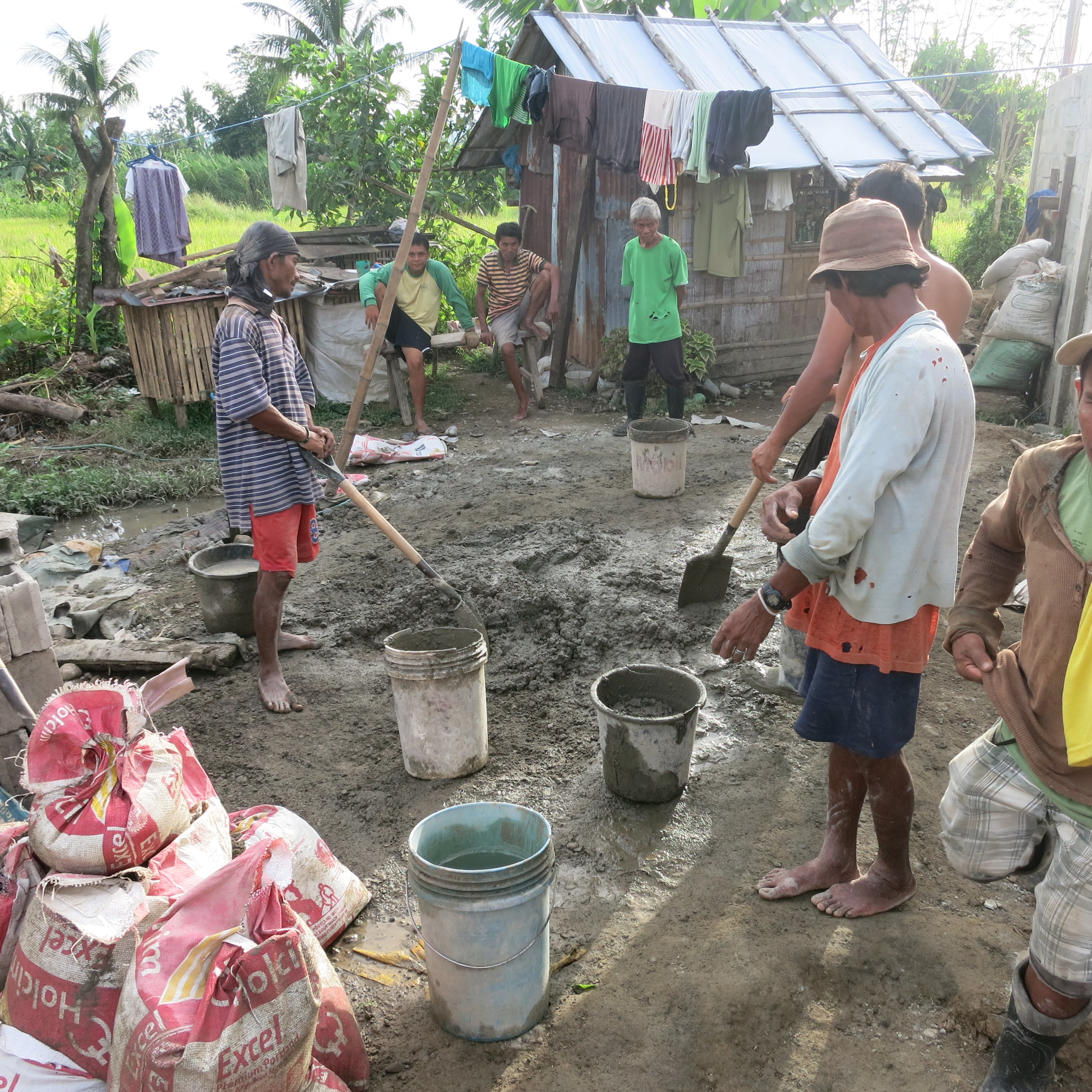 When Typhoon Yolanda hit the region, the community with houses of very light materials situated in the middle of a rice field was badly hit. The families of farmers put up tents and makeshifts houses after the typhoon.